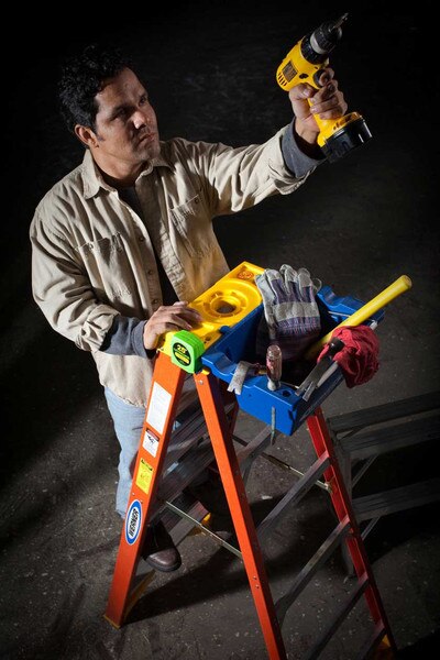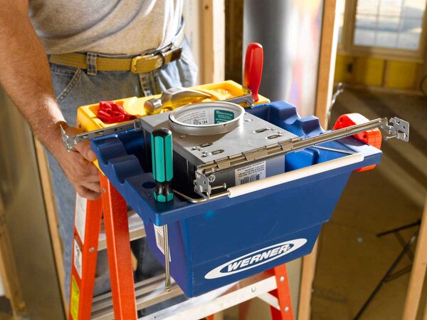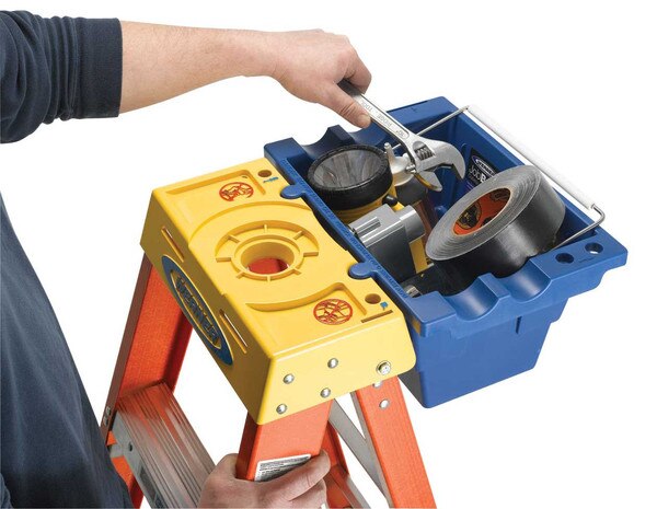 The AC50-JB-3 Lock-In Job Bucket increases your work space with 600 cubic inches of storage right at your fingertips. With the Lock-In System, the job bucket fits right into the ladder top customizing your work space. Integrated tape measure and screwdriver holders are features of the job bucket along with top grooves to hold round pipes in place. Great for all trades -- electrical, maintenance, plumbing and construction.