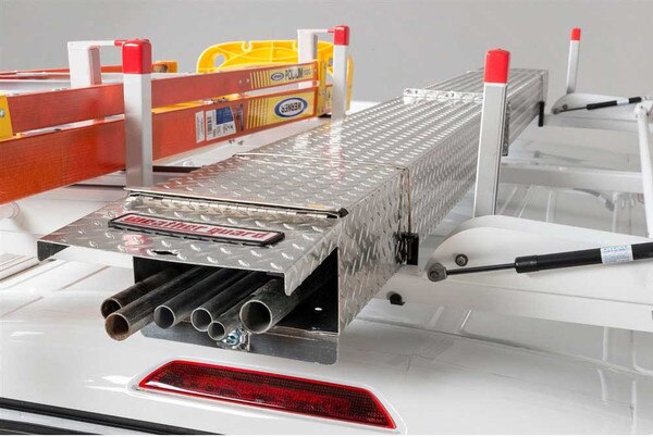 - Interlocking ladder supports ensure ladders stay in place when stowed