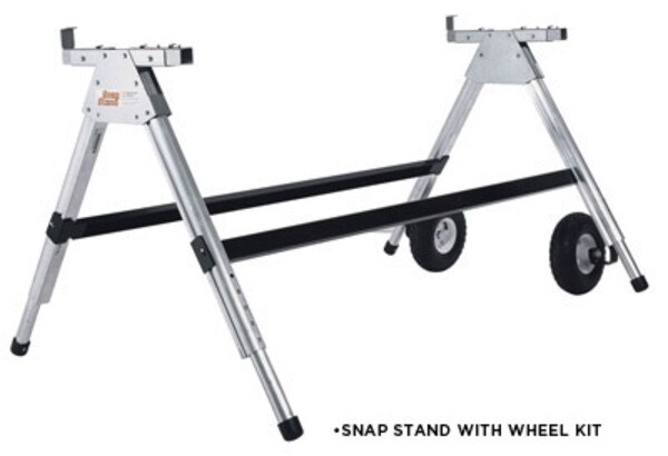 The Tapco Wheel Kit (Snap Stand) attaches to the Tapco Snap Stand. The Tapco Wheel Kit has a steel hub and tough 10" pneumatic tires.